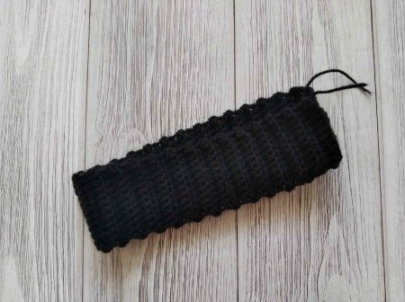 Чтобы связать резинку, нужно набрать воздушную цепочку пряжей черного цвета той высоты, какой хочется сделать резинку.