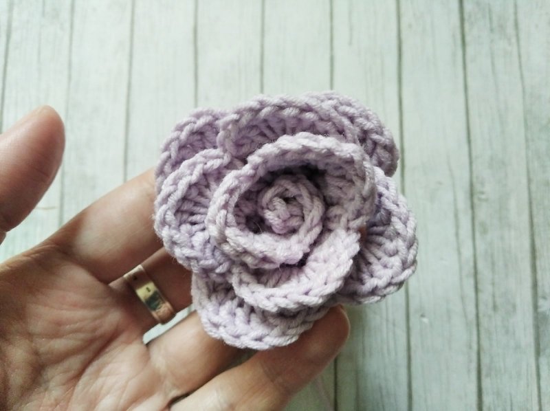 Начинаем с вязания цветочка. Он будет сиреневого цвета. И вяжется цветок по спирали.