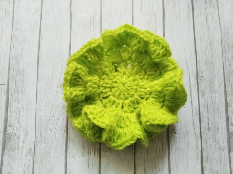 Вяжем вторую часть цветка. Она будет зеленого цвета. Вяжется деталь очень просто и состоит из одних лишь Ст СН.