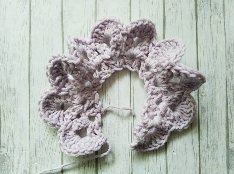 Под каждую следующую ВП будем вязать по 2 Ст СН, 3 ВП и 2 Ст СН.