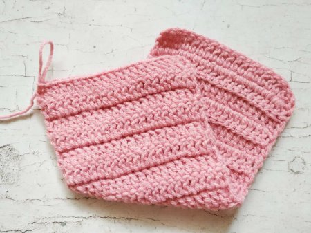 Так далее провязываем, чередуя 1 ряд за обе стенки петель и 1 ряд только за заднюю стенку.