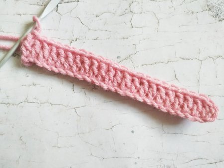 Затем набираем цепочку из воздушных петелек такой длины. Далее делаем еще 3 петли и вяжем ряд стсн, выполняя по 1 в каждую петлю, начиная с 4 от крючка. С 3 петель будет начинаться каждый из рядов.
