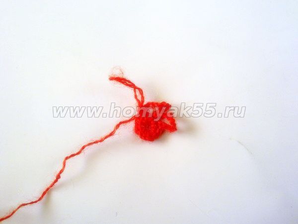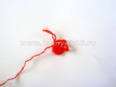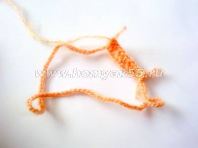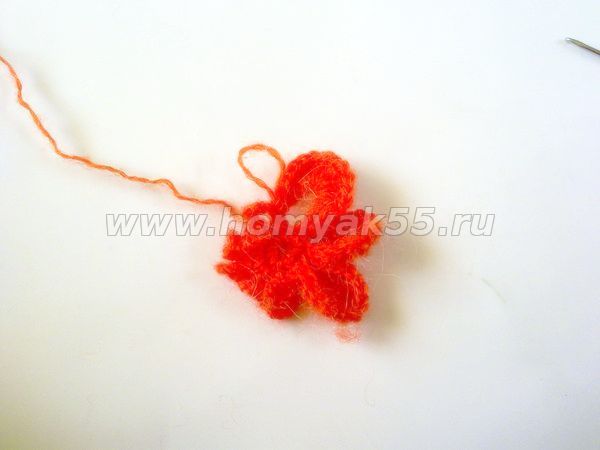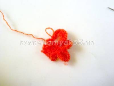Для декора повязки сделаем вязанный цветок оранжевого цвета. Цепочку из 6 ВП обвяжите 12 ССН.