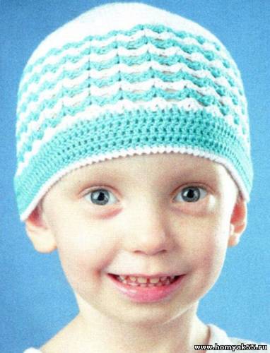 Вам потребуется: пряжа (50% ProModal, 50% хлопок, 200 м/50 г) - по 30 г белого и голубого цветов, крючок №2,5.