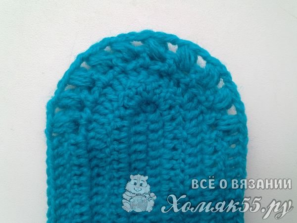 Вяжем мы разворотными рядочками. Провязываем 39 ССН. Далее вяжем в петлю два ССН, в следующую три ССН, в другую снова два. И по другой стороне провязываем 39 ССН. Разворачиваемся и опять выполняем 39 ССН. Далее в следующие три петли вяжем по два ССН. В следующую петлю один ССН и в три других по два ССН. Провязываем по другой стороне 39 ССН. Разворачиваемся и вяжем опять 39 ССН.