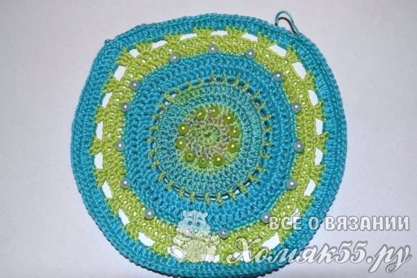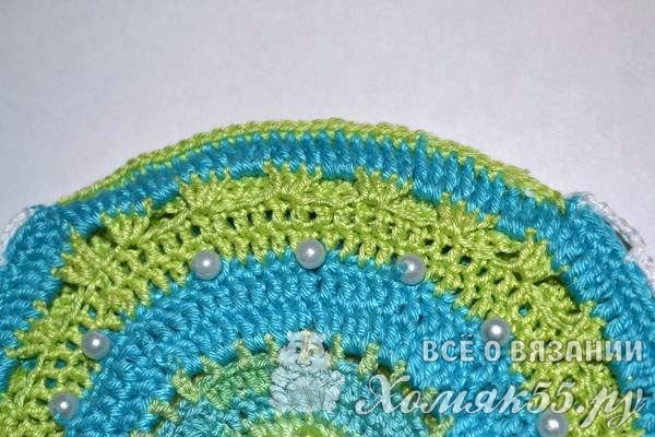 Клапан и стенки сумочки обязать нитью белого цвета. СБН в каждый четвертый сбн предыдущего ряда, разделяя их пятью ВП.