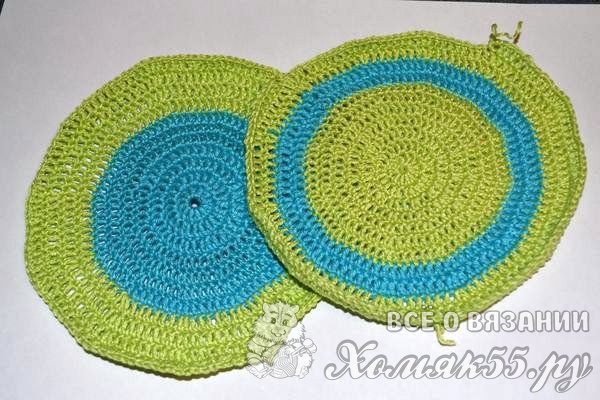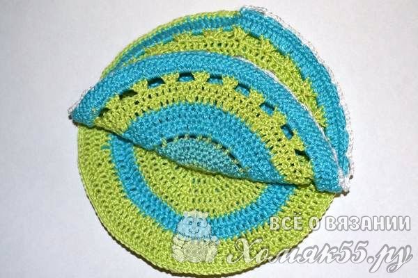 5 ряд: переходим на вязание нитью бирюзового цвета. Вяжем попеременно 1 ССН, 2 ССН до конца ряда = 60 ССН