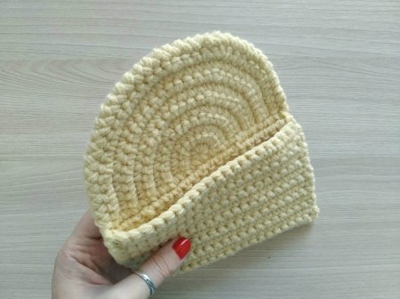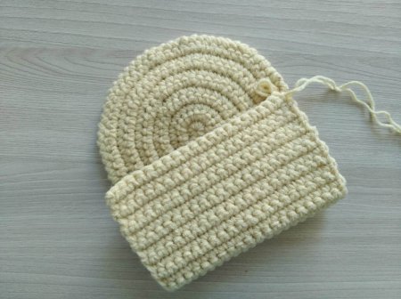 Подгибаем нижнюю часть полотна к началу крышечки.
