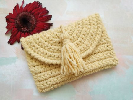 Пряжа для клатча должна быть толстой. Можно вязать в 2-3 нити.