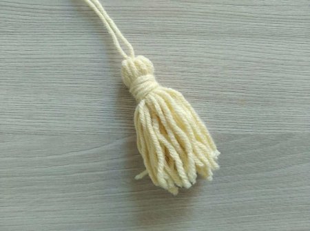И сделаем в качестве украшения на крышку кисточку из той пряжи, из которой вязали сумку.