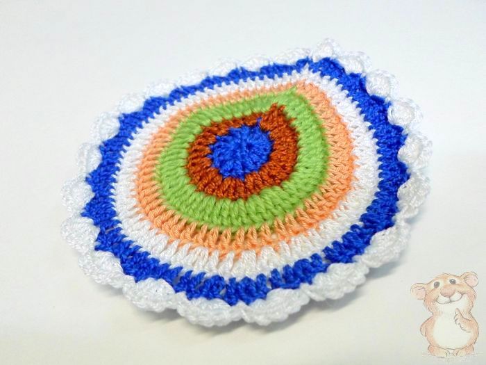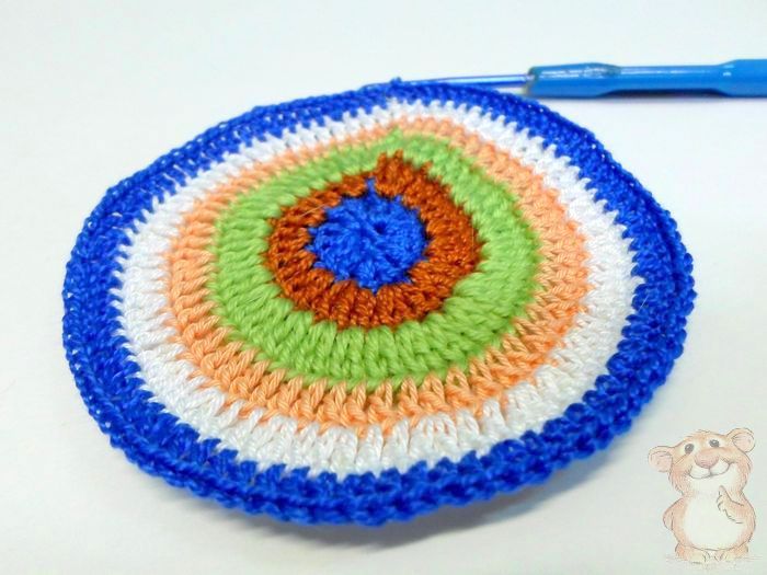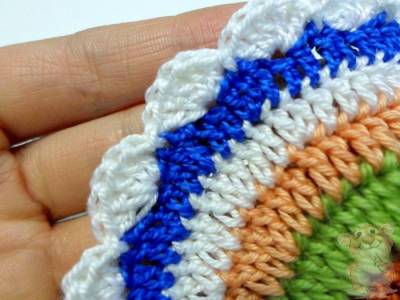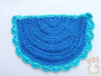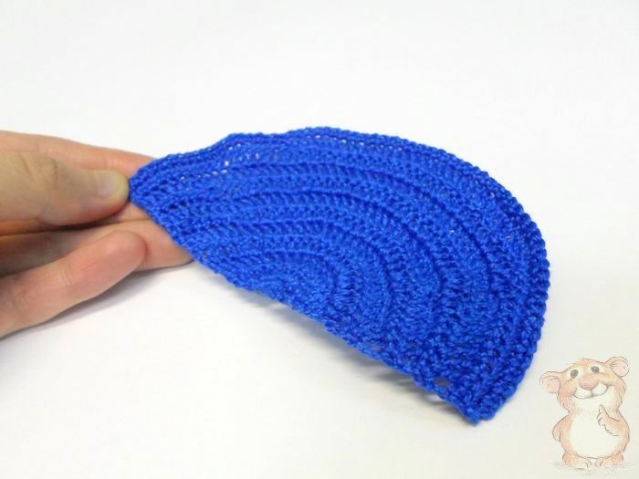 Далее снова вяжем оборки по округлому краю основы по той же схеме, по которой мы делали оборки на «крышку»-круг.