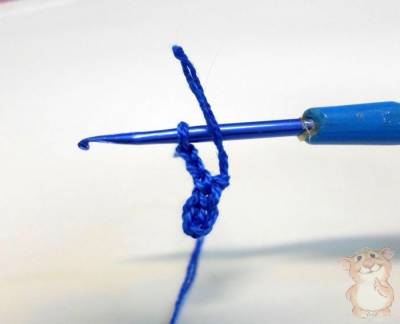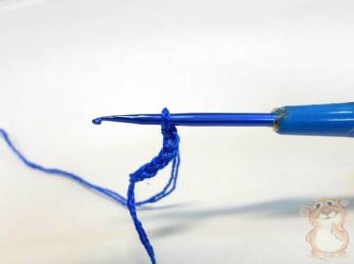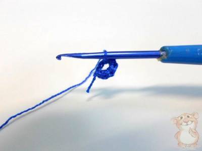 Соединяем концы провязанной цепочки в колечко при помощи соединительного столбика, а затем провязываем 3 воздушных петли для подъема на следующий ряд: