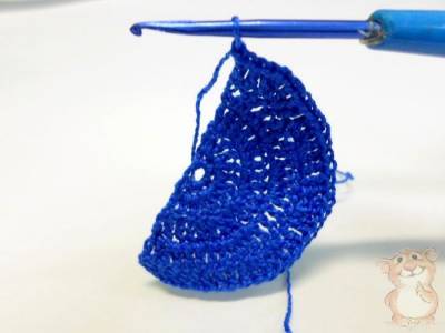 Вяжем так еще 4 ряда, но в каждом ряду количество «крайних» петель, провязанных столбиками без накида должно немного увеличиваться. Например, в 7 ряду делаем по 6 петель столбиков без накида с каждой стороны, а в 8-м – уже по 7. В конечном итоге у вас получится так: