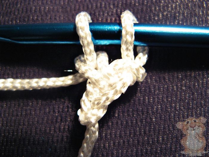 4. Переворачиваем по часовой стрелке и находим 1 параллельную петлю и протягиваем через неё нить.