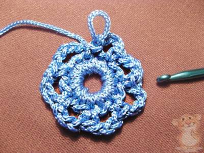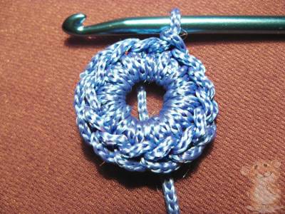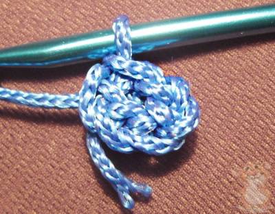 1. Набираем 5 ВП синей нитью, и соединяем их в кольцо.