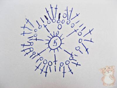 2. Делаем 4 ВП и 1 СБН через одну петлю. * 3 ВП + 1 СБН через одну петлю *. Повтор от *.