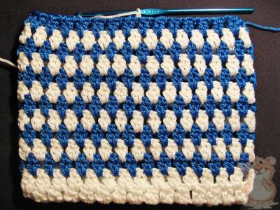 Ряды 4 - 13 провязываем, так же как и 2, чередуя цвета.