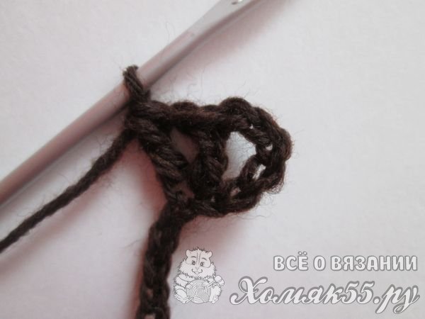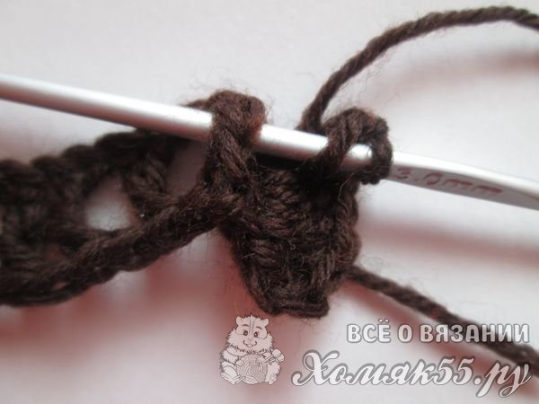 Делаем воздушную и еще один такой же столбик мы должны провязать сюда же, в это же место.