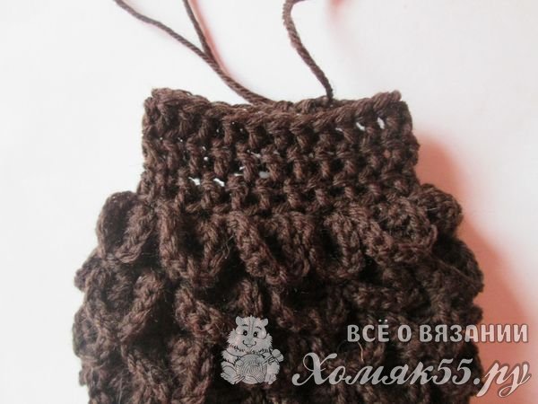 Всего таких рядов с чешуйками нам нужно провязать шесть.