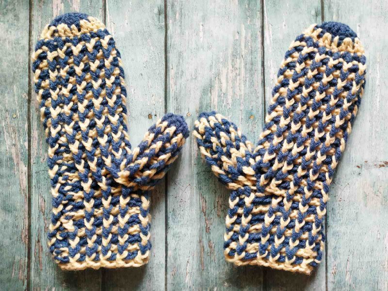 По такой же схеме вяжем еще 1 варежку. Такие варежки получаются теплыми и плотными, поэтому они – отличный вариант для холодной зимы.