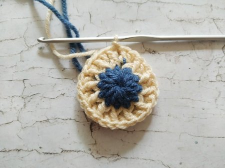 Затем нить фиксируем и обрываем. Спрячем хвостик с изнаночной стороны в петли.