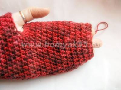 Когда варежка скроет мизинчик, начнем убавлять вязание.