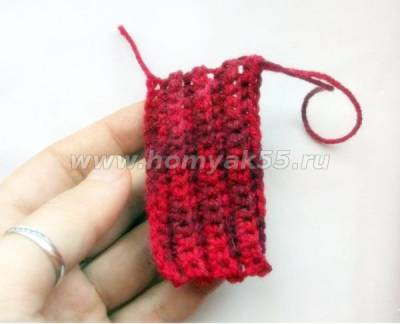 Делаем одну петлю для подъема и вяжем столбики без накида в каждую петельку.