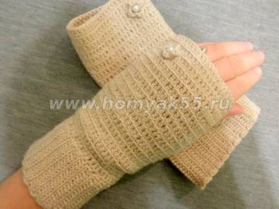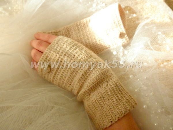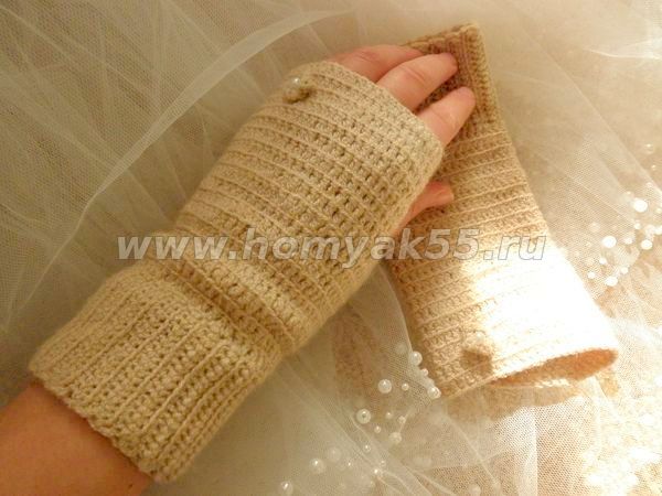 Хотите дополнить свой гардероб элегантным аксессуаром? Обратите внимание на митенки. Не зря изысканные аристократки 19-го века сплошь и рядом позировали перед художниками, обмахиваясь веером или картинно поднося к шляпке тонкие пальцы. Женские руки – предмет особого внимания, а правильно подобранные украшения могут сотворить с ними чудеса.Митенки, закрывающие запястья и без деления на пальцы, зрительно удлиняют кисть, придают руке нежный и трогательный вид. Именно такую женственную модель мы сегодня будем вязать крючком. Светлый беж подойдет к вещам шоколадного, горчичного цвета, цвета охры, или дополнит теплые контрастные оттенки - коралловый, лиловый, мягкую фуксию. Впрочем, ничто не мешает вам подобрать другой цвет митенок.