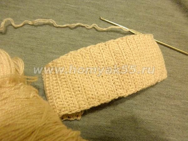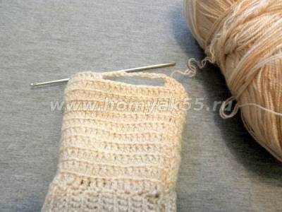 Начинаем вязание с манжеты. Будем имитировать резинку с помощью столбиков без накида, связанных за заднюю стенку. В отличие от вязания на спицах, такая «резинка» вяжется вдоль запястья.