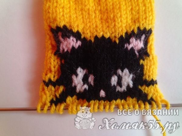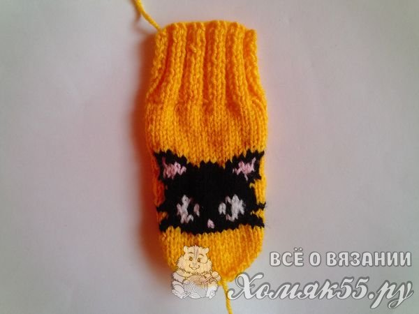 Так же вяжем и вторую варежку, только палец делаем с другой стороны. Вот такие варежки с котятами получаются!