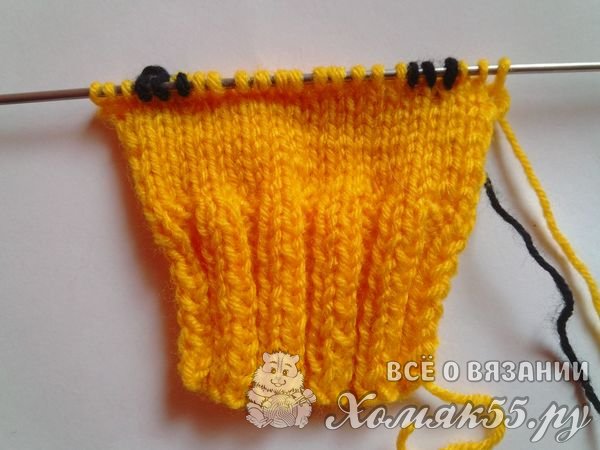 Седьмой ряд. 5 желтых, 13 черных, 5 желтых петель.
