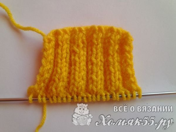 И вяжем резиночку. Сначала две изнаночные, потом две лицевые петли. И так вяжем несколько рядов. Количество этих рядочков зависит от желаемой высоты манжета.