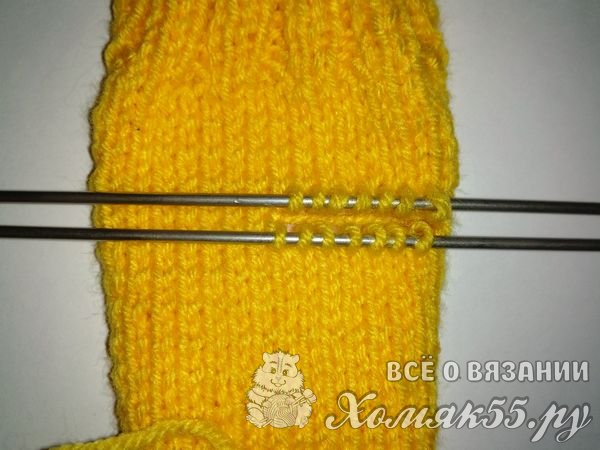 Мы будем вязать варежки на двух спицах. И только пальчик будем вывязывать при помощи третьей.