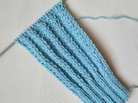 Далее переходим на вязание резинки 2 на 2, но вяжем точно так же, захватывая кромочные петли по бокам.