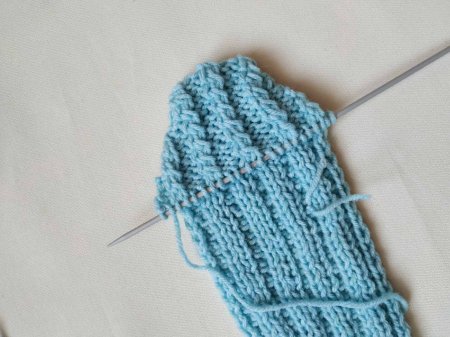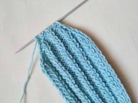 Теперь будем вязать точно так же, как вязали верхнюю часть варежки, но заканчивать ряды будем немного иначе.