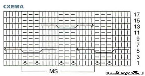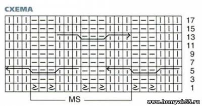приведены только лиц. ряды. В изн. ряду петли вязать по рисунку. Начинать с 1