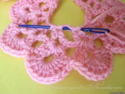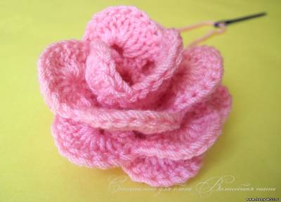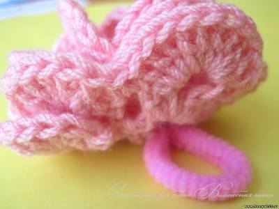 На фото - идет процесс вязания 3-го ряда. Кстати, оба цветочка связаны и оформлены в течении 1 часа.