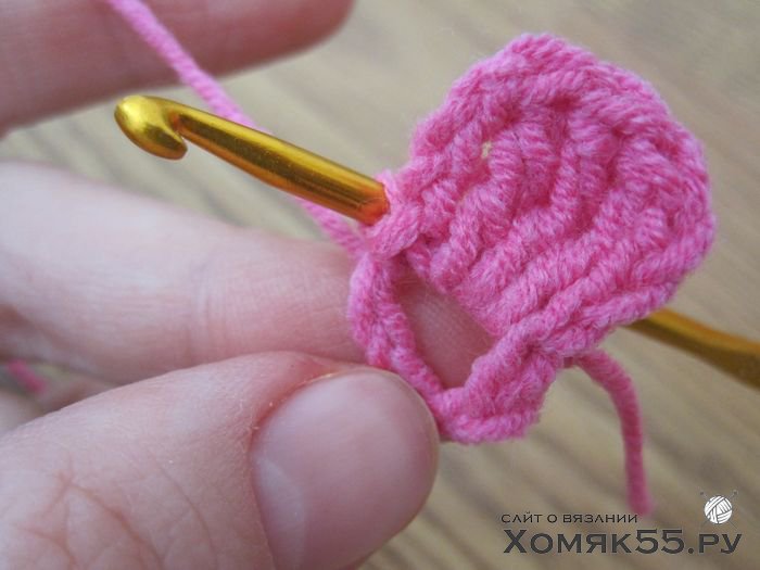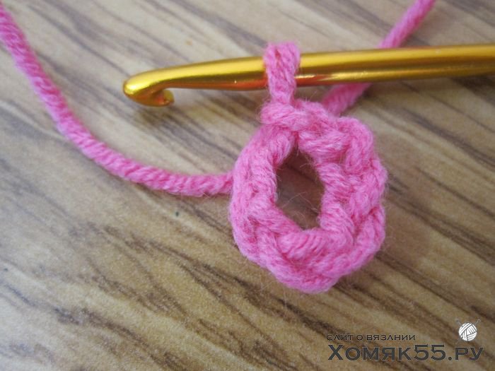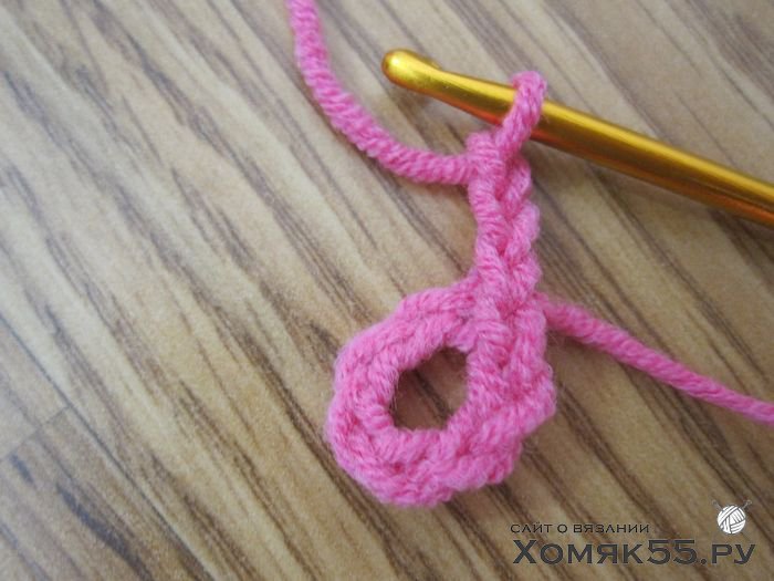Теперь столбик с двумя накидами провязываем в кольцо.