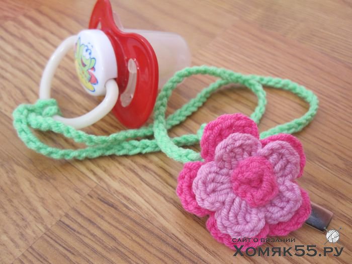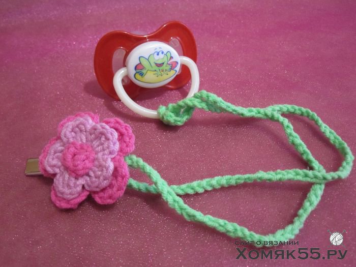 Красиво украсить кофточку или платьице вашей любимой принцессы и в то же сделать так, чтоб пустышка всегда оставалась при ребенке, можно довольно простым способом, особенно если вы хоть немного владеете техникой вязания крючком. Замечательный и оригинальный держатель для пустышки с нежным цветком предлагаю связать своими руками в данном мастер-классе.
