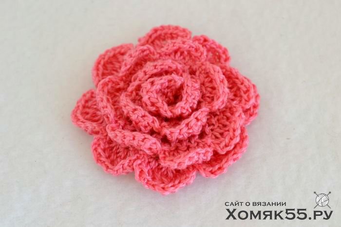 Такая розочка может стать оригинальным украшением для одежды или различных сумок и шарфиков, ее можно также использовать как брошку, для декора детской шапочки или повязки для волос, такой розой можно украсить и вязаные салфетки. А вяжется она совсем просто и это под силу даже начинающим мастерицам.