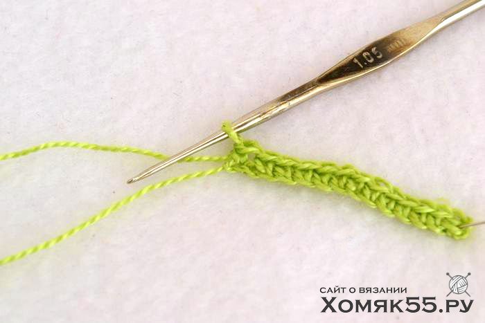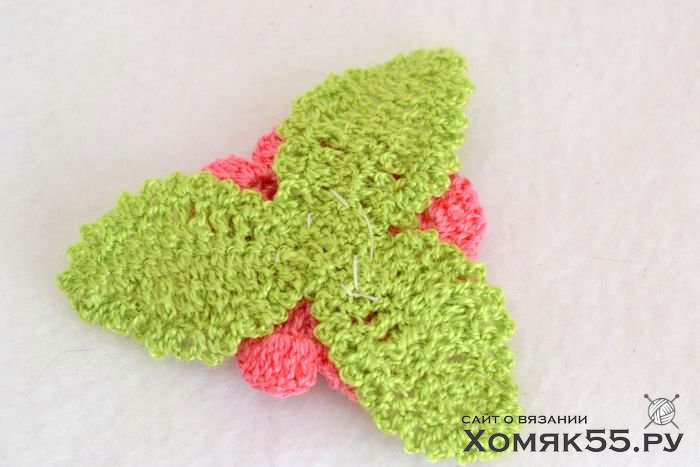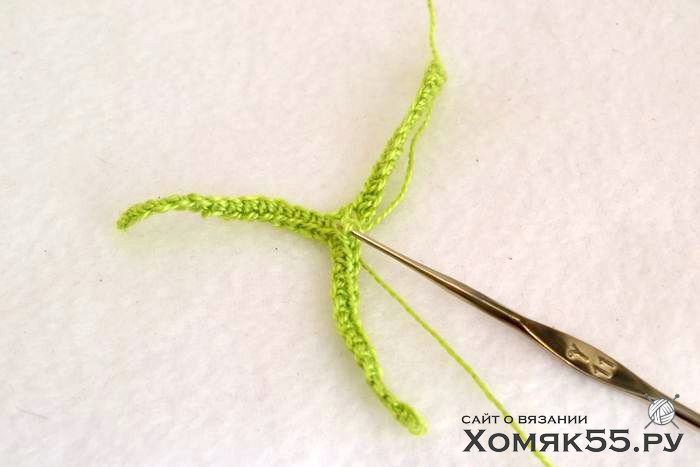 Начинаем вязать листик – 2 СБН, 6 ССН, 2 СБН