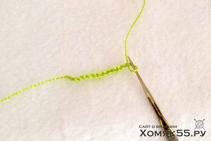 Теперь нам надо связать листики, мы их так же свяжем одной деталью – набираем цепочку из 10 ВП.