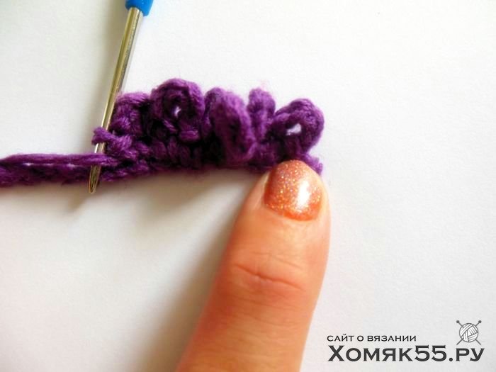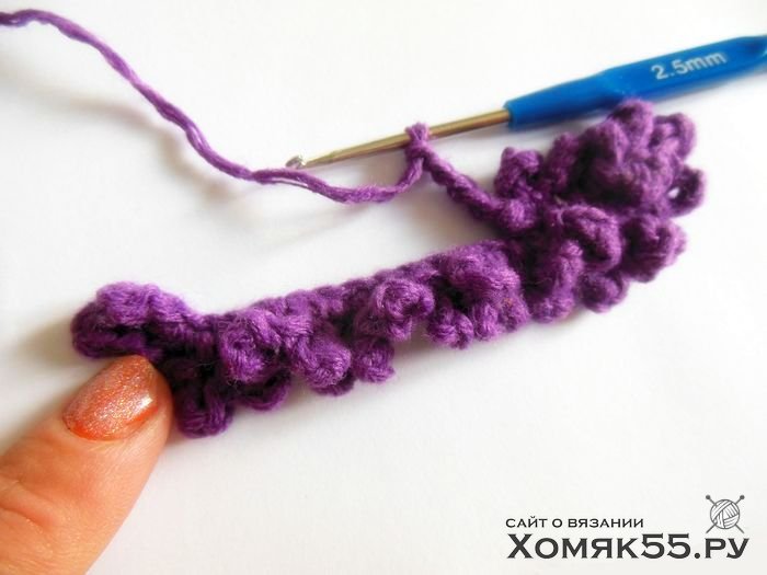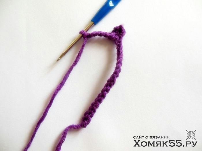 Набираем желаемое количество воздушных петель (на своё усмотрение) + 5 ВП сверху для создания первого «кольца» на цветущей ветке.