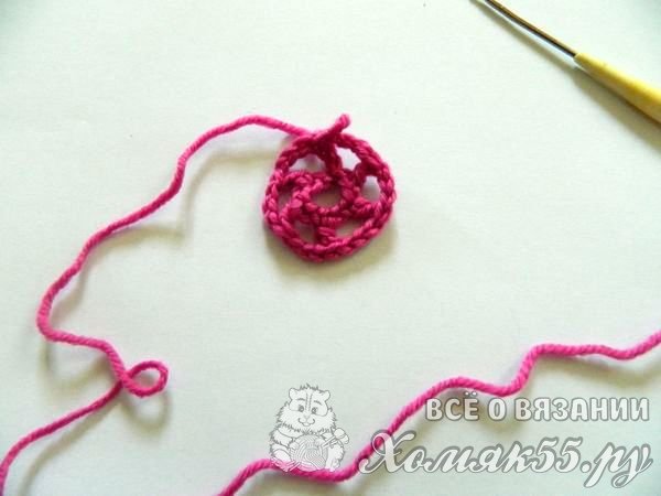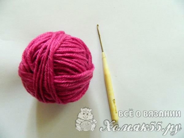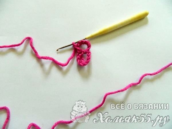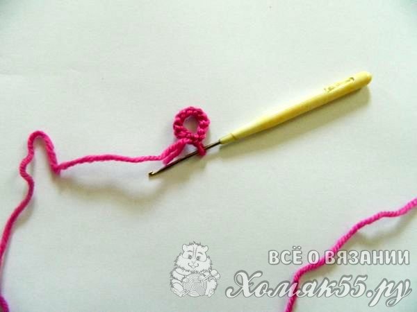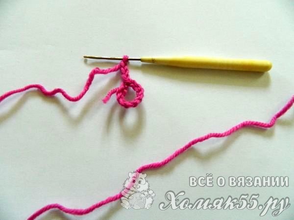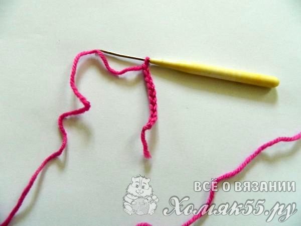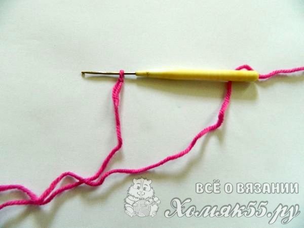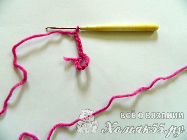 Закрепляем нить на крючке и вывязываем цепочку из десяти воздушных петель.