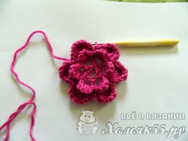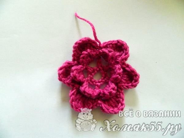 Следующие ряды лепестков можно вязать до тех пор, пока цветочек не приобретет необходимый размер.