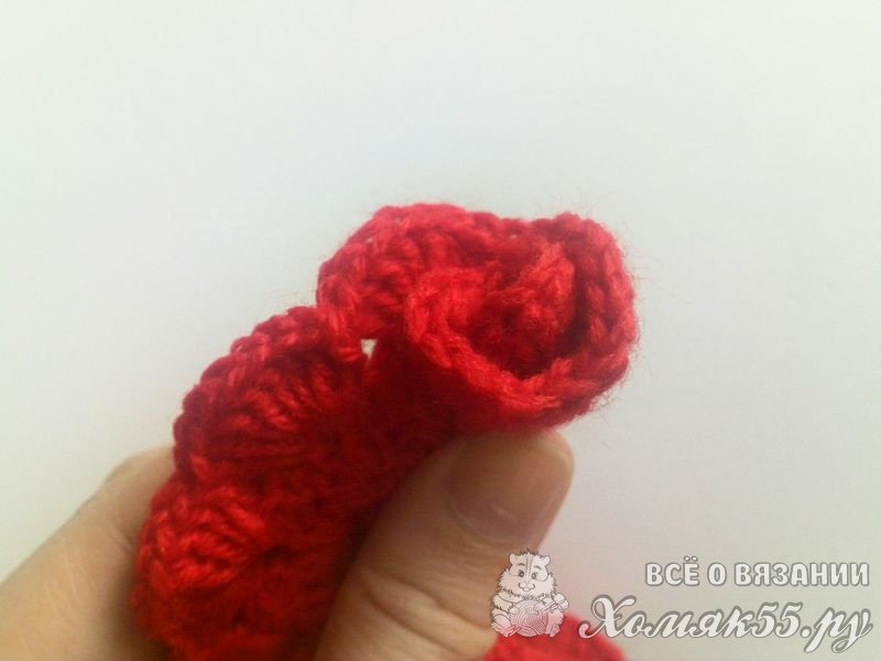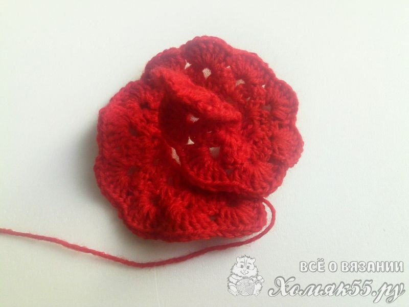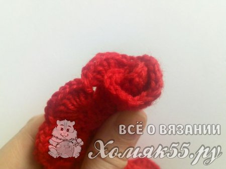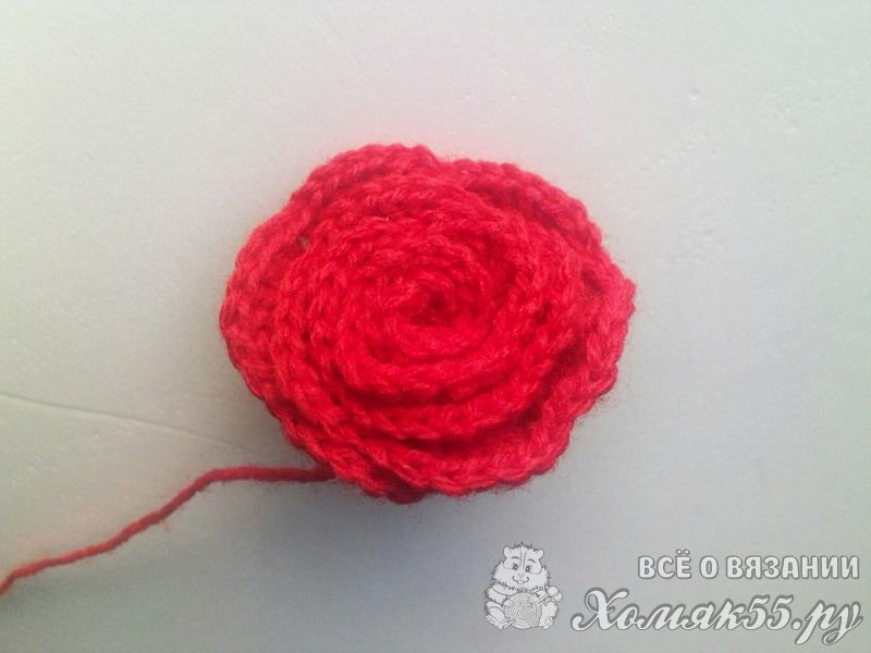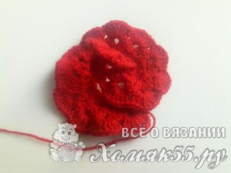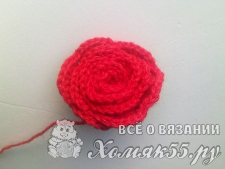 Теперь начинаем скручивать вязание так, чтобы получился цветочек.