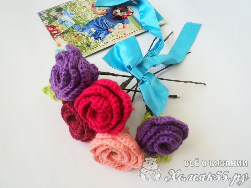 Красивые вязанные крючком букеты смотрятся в интерьере очень необычно и небанально. К тому же такие цветы не вянут. И мы свяжем букет роз крючком. Ими можно украсить дом или подарить на восьмое марта кому-то из близких. Такой подарок точно не оставит никого равнодушным. Ведь он сделан своими руками, а значит с любовью и заботой.