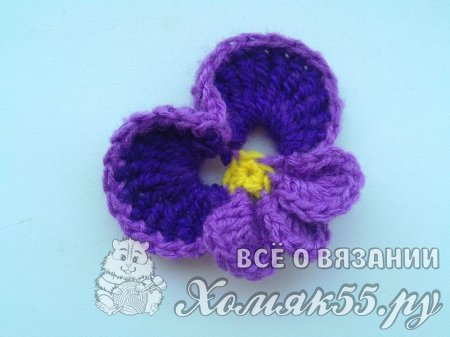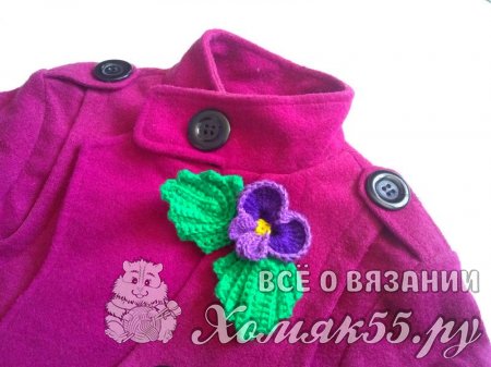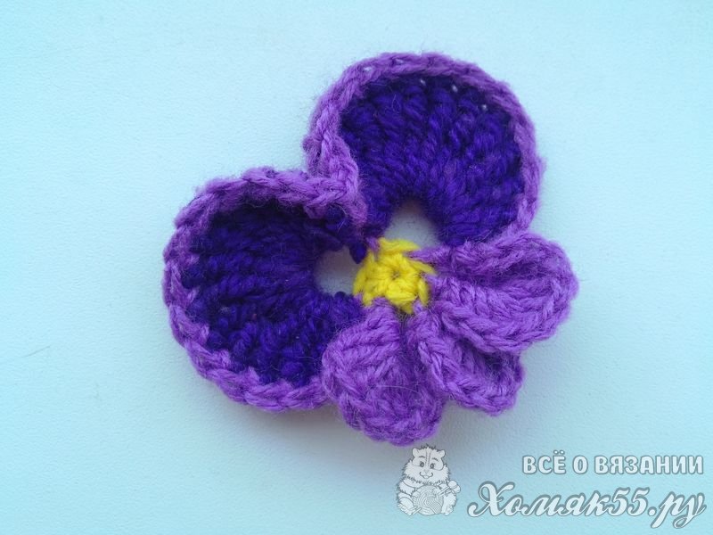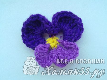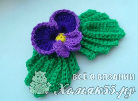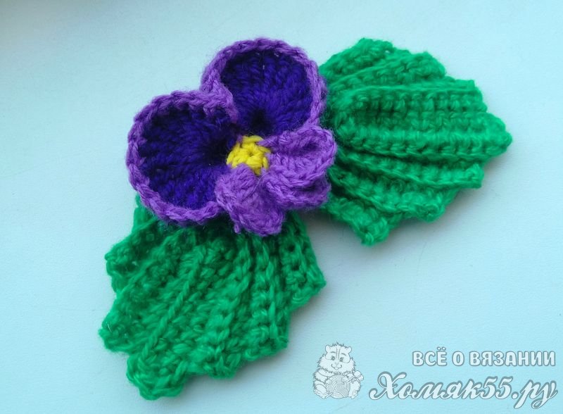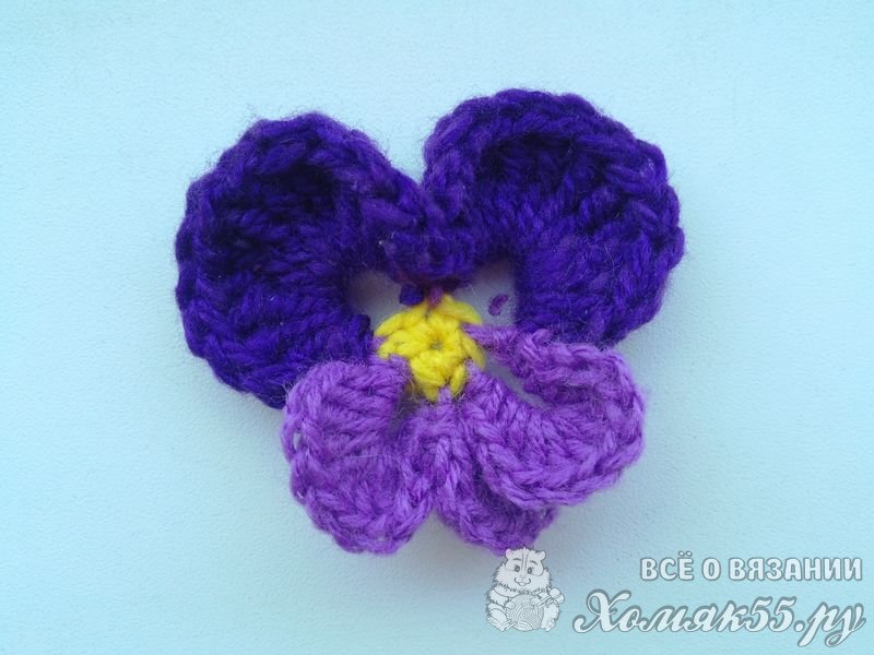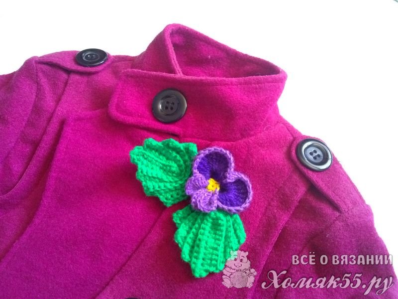 Вот такая брошь крючком в виде Анютиных глазок получается!