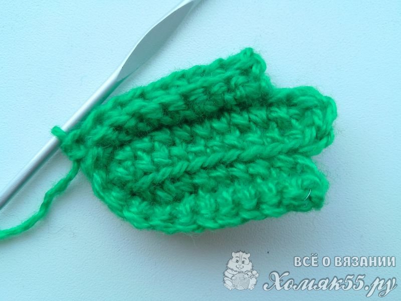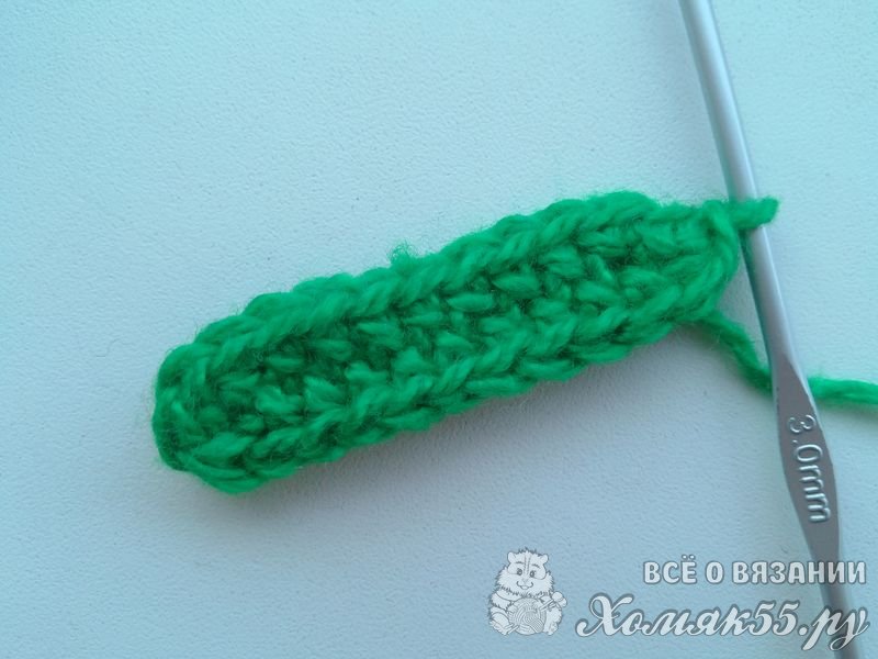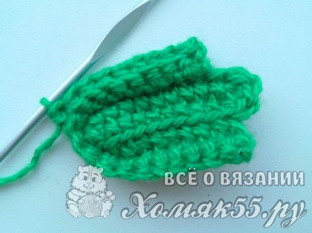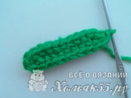 Для них набираем цепочку из двенадцати ВП. И вяжем далее СБН. А в самую последнюю ВП выполняем три СБН. И вяжем по второй стороне.
