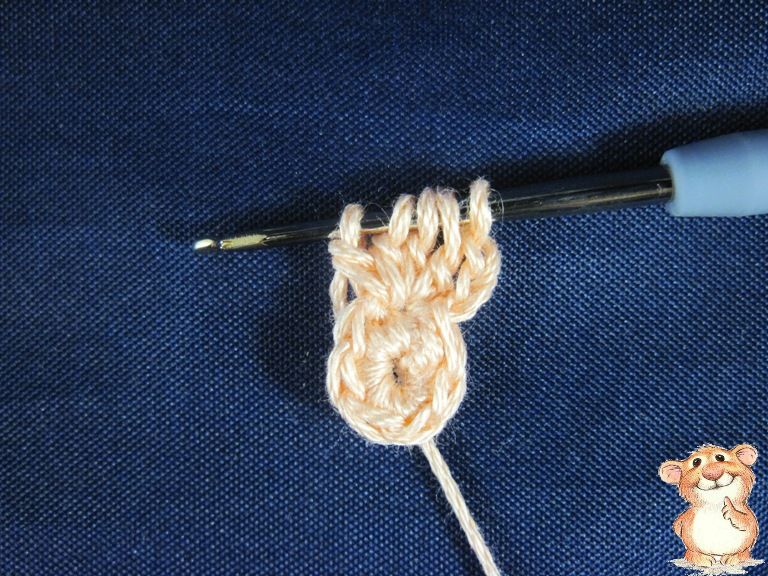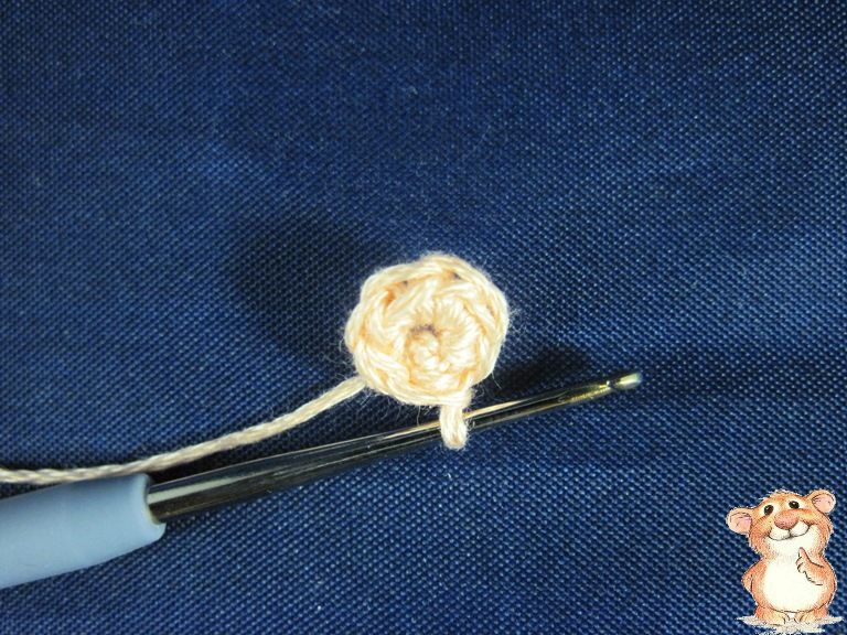 На крючке набираем 5 воздушных петель (ВП) и замыкаем их в кружок, чтобы получить основу для вязания серединки.